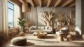 リビングは温かい色が相性良いです。オレンジやマスタードを小さく入れると、部屋が“人がいる場所”になります。